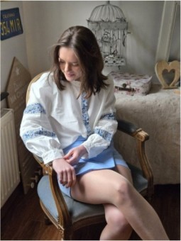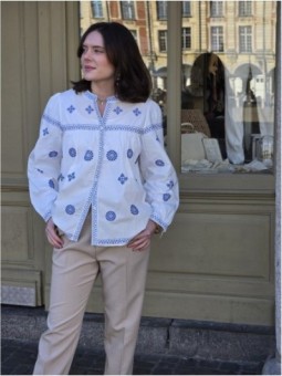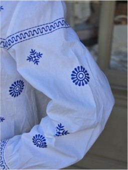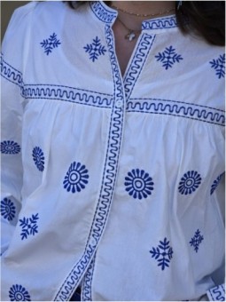 Blouse blanche avec broderies bleues a motifs floraux et...
