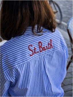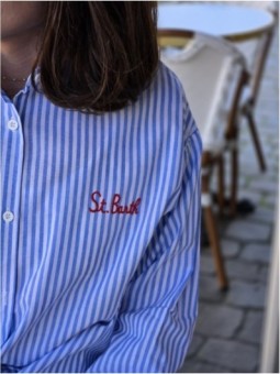 Chemise a rayures bleu et blanche, avec inscription "St...