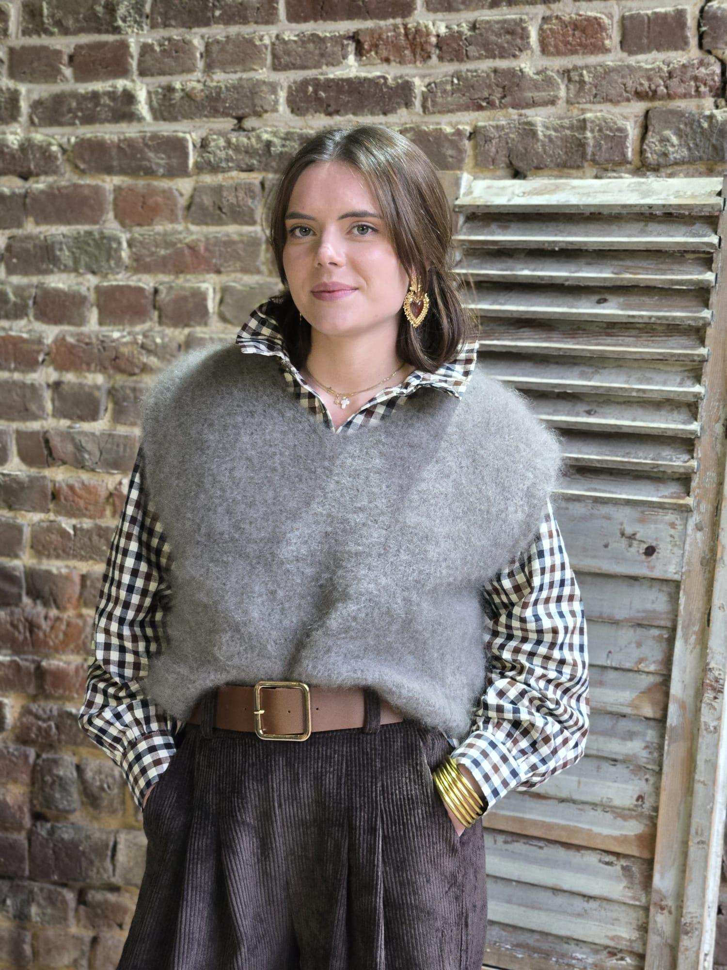Pull avec encolure arrondie ,finition côte. Manche courte....