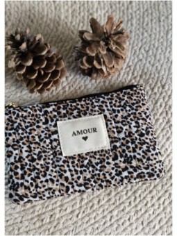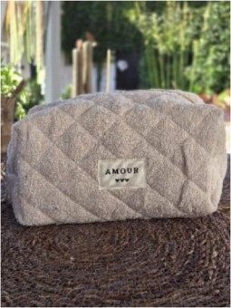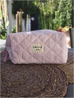 Pochette zippée inscription AMOUR Tissus éponge , effet...