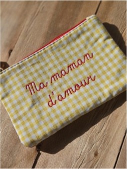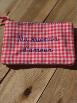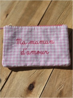 Pochette vichy Inscription "Ma Maman D'amour" ,brodée Taille...