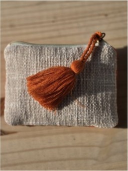 Pochette zippée ,avec pompon de couleurs. Devant en perles...
