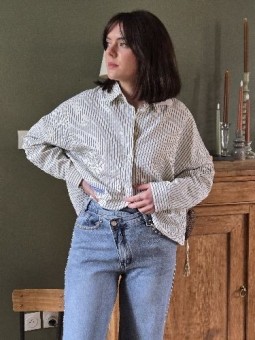 Jeans qui mélange on look féminin, vintage.