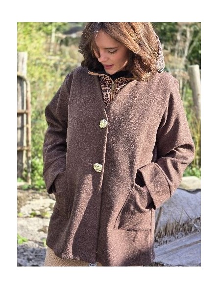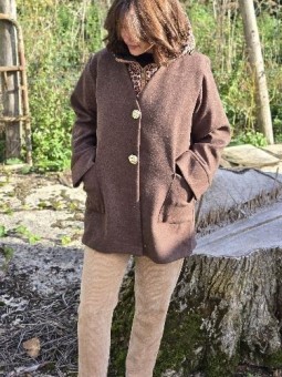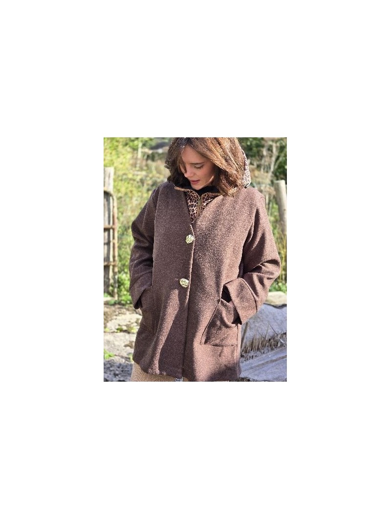 Cette veste est sans col vous pouvez y ajouter un plastron , sur la photo plastron léopard
